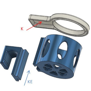 Klickelemente oder greife zum Modellkleber. Markiert durch "KE" für Klickelement und "K" für Kleber.